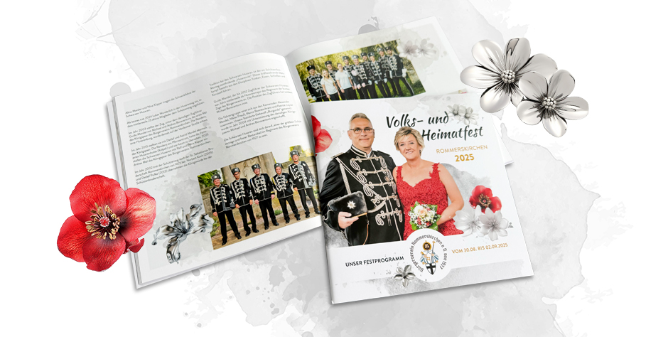 Frisch gedruckt und im praktischen Format finden alle Rommerskirchener, Eckumer, Vanikumer und Sinstedener in den kommenden Tagen unsere neue Festschrift zum diesjährigen Volks- und Heimatfest in ihren Briefkästen. Den Regimentsbefehl mit allen Zugaufstellungen und Abläufen, sowie die Zugwege der Festumzüge können als Einzeldokumente heruntergeladen werden.